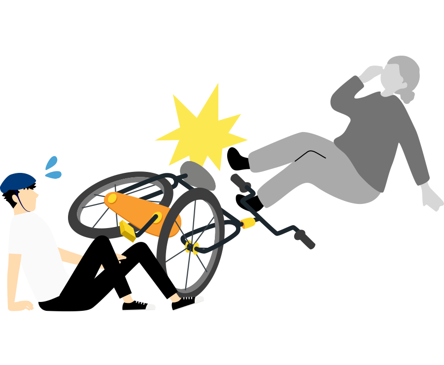 自転車事故に備える暮らしのあんしん保険「おでかけ安心プラン」は、個人賠償責任補償セットで安心。 さらに運行中の乗り物(自動車・自転車・原動機付自転車・電車・航空機・船舶など)との衝突・接触等の交通事故、運行中の乗り物に搭乗している間の事故、乗客として駅構内(改札口の内側)にいる間の事故等でケガをされた場合も、保険金をお支払いします。